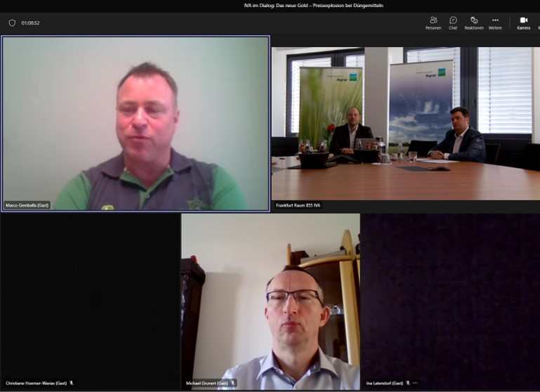 Der Industrieverband Agrar e. V. (IVA) lud heute Vertreter aus Politik, Landwirtschaft, Wissenschaft, Industrie und Medien ein, um über die aktuelle Düngekrise zu diskutieren – wie geht die Landwirtschaft mit der Situation um, was bedeutet das für die Saison 2022 und was können wir aus der aktuellen Situation lernen?