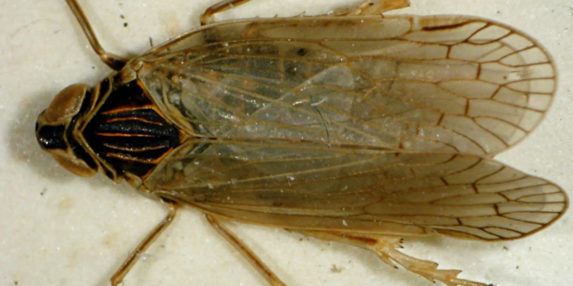Die Schilf-Glasflügelzikade (Pentastiridius leporinus) überträgt die bakterielle Zuckerrübenkrankheit "SBR" (Syndrome Basses Richesses – Syndrom der niedrigen Zuckergehalte). Hier drohen Ernteausfälle von bis zu 50 Prozent. Foto: Michael F. Schönitzer / Wikipedia, CC BY-SA 4.0