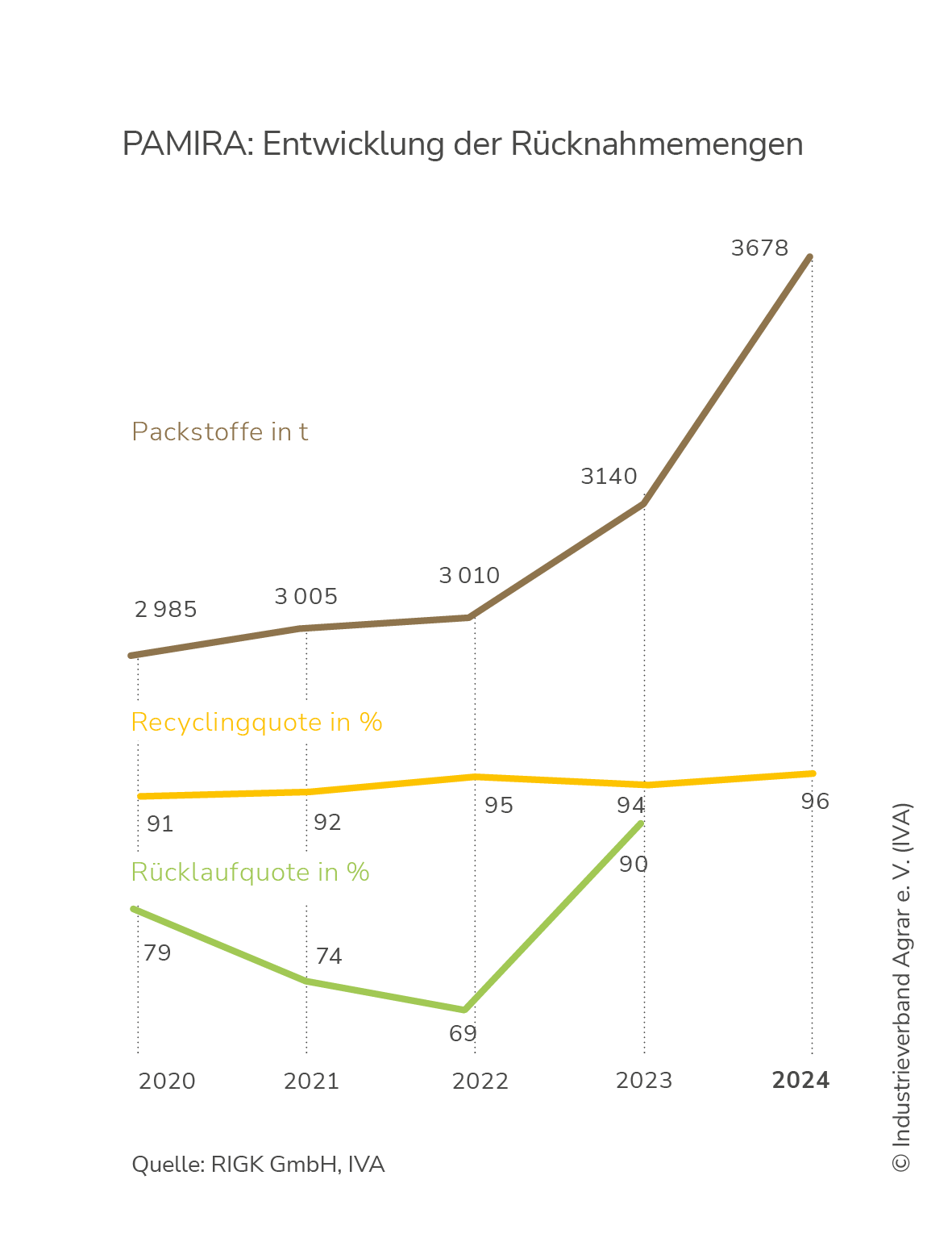 PAMIRA, die Packmittel-Rücknahme Agrar, ist ein einfaches System zur sicheren und umweltgerechten Entsorgung leerer Pflanzenschutzmittel-Verpackungen. Landwirte sammeln die angefallenen Verpackungen und geben sie - vollständig entleert, gespült und trocken - an festgelegten Terminen einmal jährlich kostenfrei an einer der bundesweit über 300 Sammelstellen ab. Nach der Kontrolle, dass die Annahmebedingungen erfüllt sind, werden die Verpackungen angenommen, verpresst und stofflich oder energetisch verwertet: zum Beispiel in einem Recyclingbetrieb, der sie zu Kunststoff-Endprodukten weiterverarbeitet, beispielsweise zu Kunststoffummantelungen für Erdrohre.